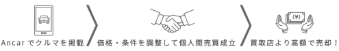 Ancar では売り手と買い手の直接取引きをサポートしている為、消費税と中間マージンが省け、売り手と買い手にメリットのある取引となります。